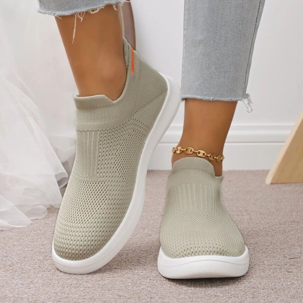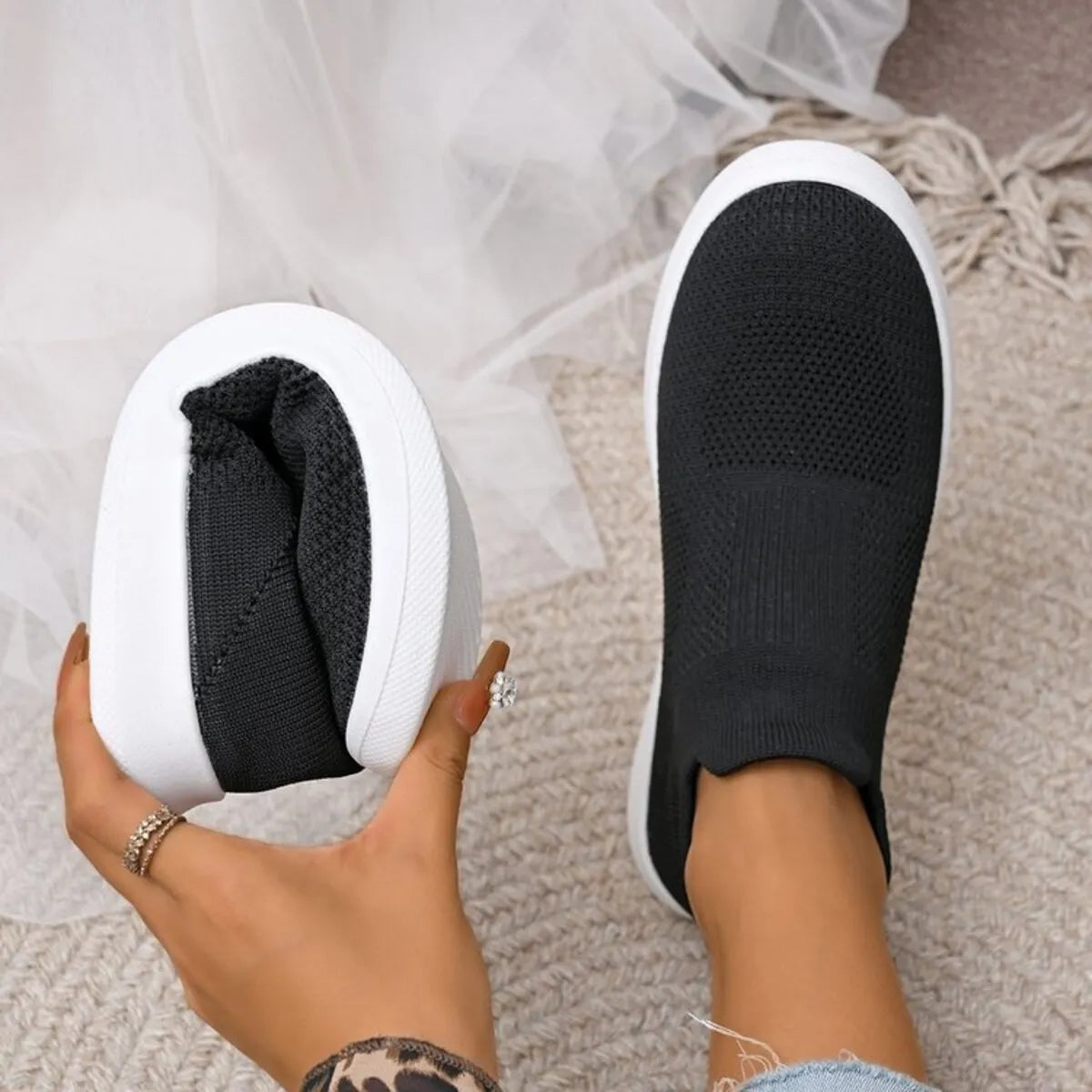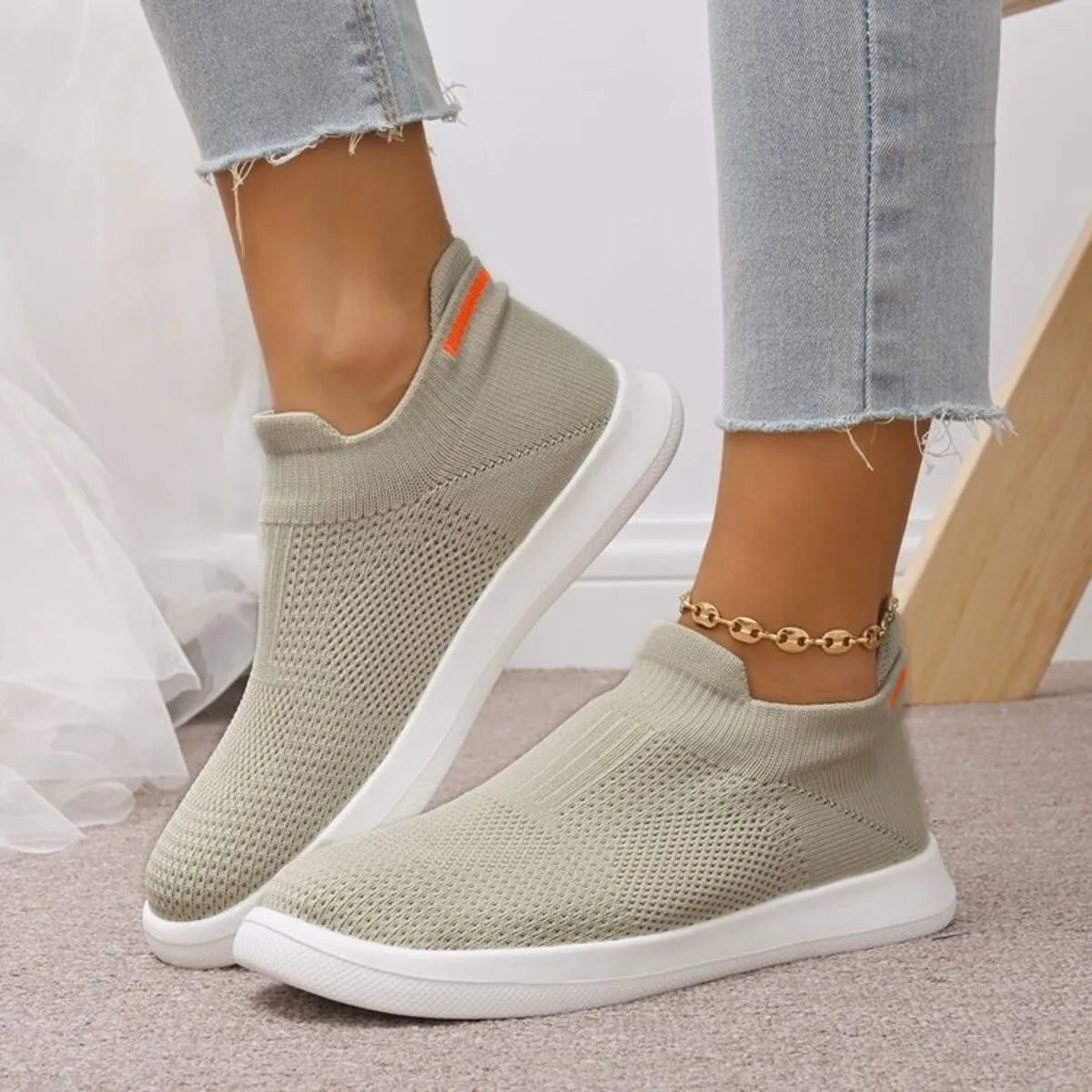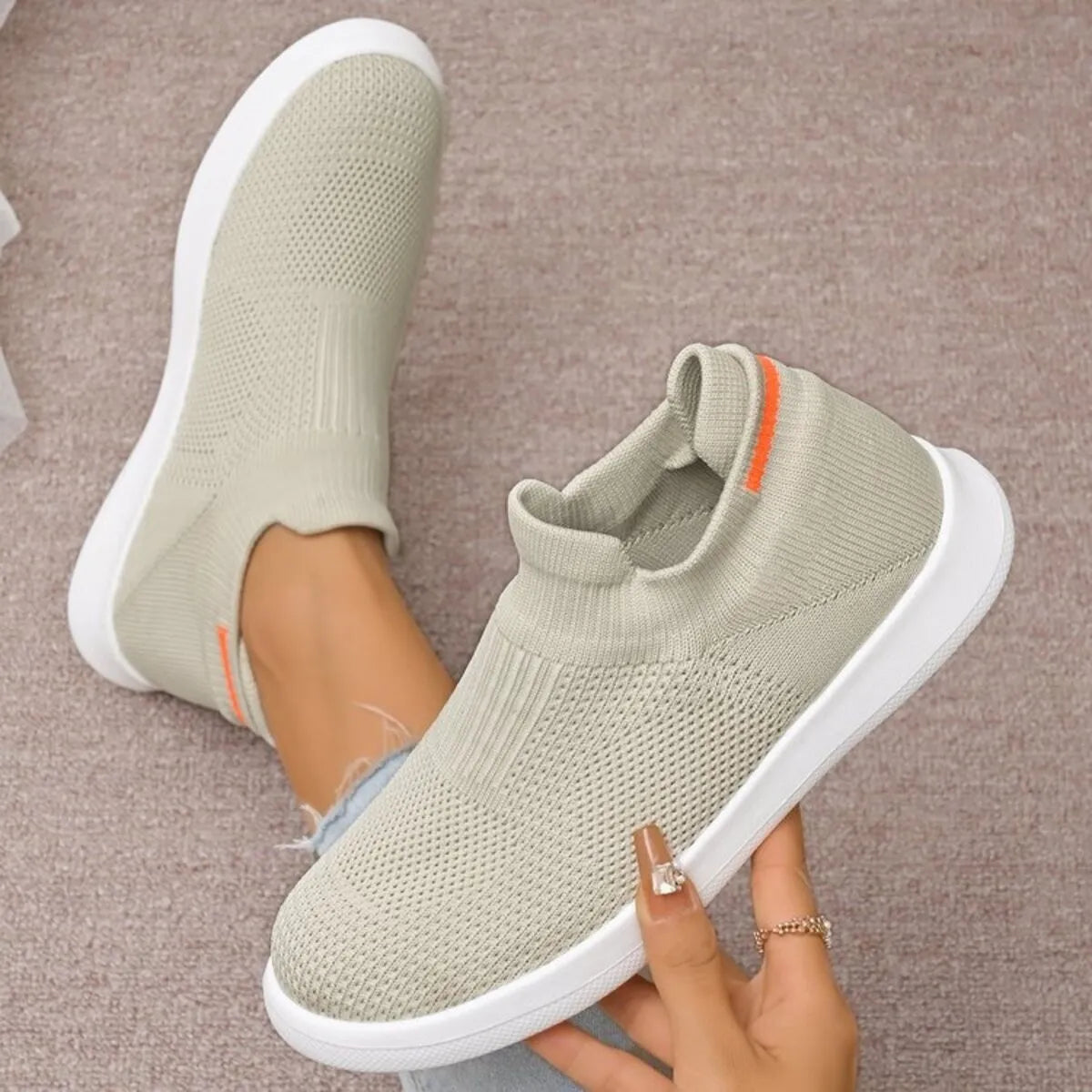 Step into comfort with these modern slip-on sneakers that bring athletic style to your everyday wardrobe. The breathable knit upper creates a sock-like fit that hugs your foot naturally while allowing airflow. The slip-on design eliminates laces for easy wear while the stretchy material accommodates different foot shapes. A small orange tab detail adds a pop of color to the minimalist aesthetic. The lightweight construction makes these perfect for all-day wear without feeling heavy or bulky.
