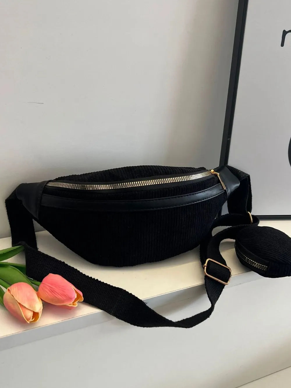 Corduroy Adjustable Strap Crossbody Bag with Pouch