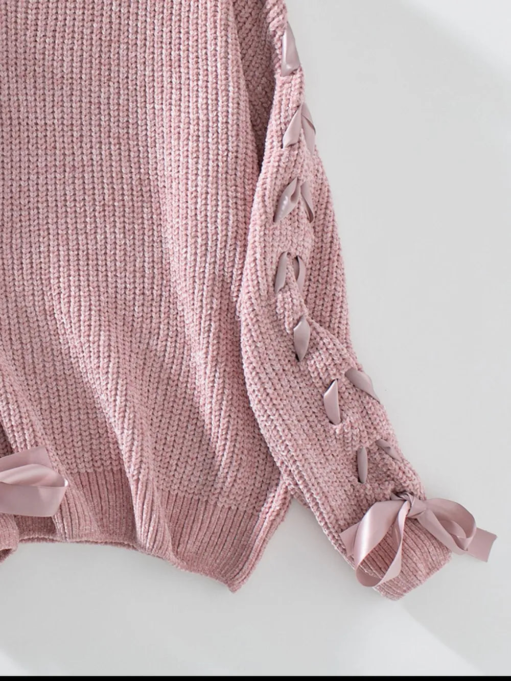 Lace Up Round Neck Long Sleeve Sweater